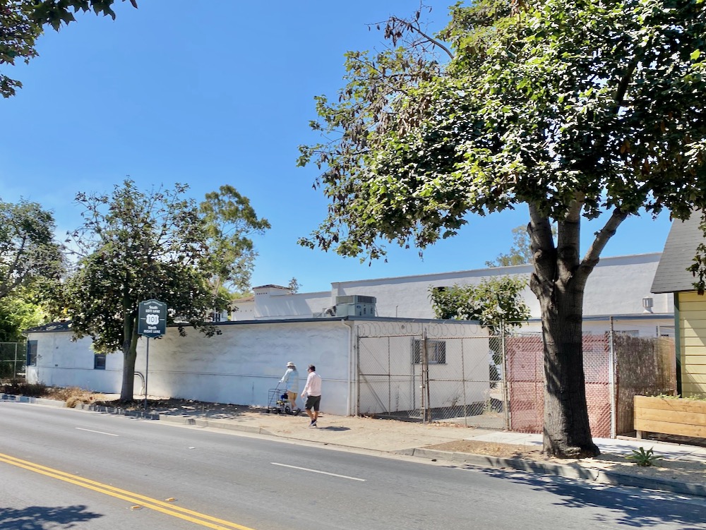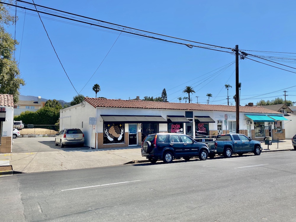 Much more impressive is 1922 De La Vina Street (Mission/Pedregosa), which proposes to: “retain the existing commercial buildings [site of Sheepskin Trading Post, Boom Boom Bike Room, Cat House Hotel, et al] and construct a new 45-foot high residential apartment structure comprised of three stories above the parking podium level (four stories total), containing 26 residential units, of which 10 will be allowed through State Density Bonus provisions. Three additional loft units are proposed in a portion of the existing commercial building fronting the proposed paseo. The total proposed residential units on site total 29. […] The residential units will include 40-100-square-foot private outdoor decks and common outdoor area located on the roof level. The parking structure includes twenty-one residential parking spaces and eleven commercial spaces, 11 surface parking spaces will remain; an outdoor public paseo space is proposed to complement the existing commercial uses. Access will be provided from the existing driveways off Mission Street and De La Vina Street.”