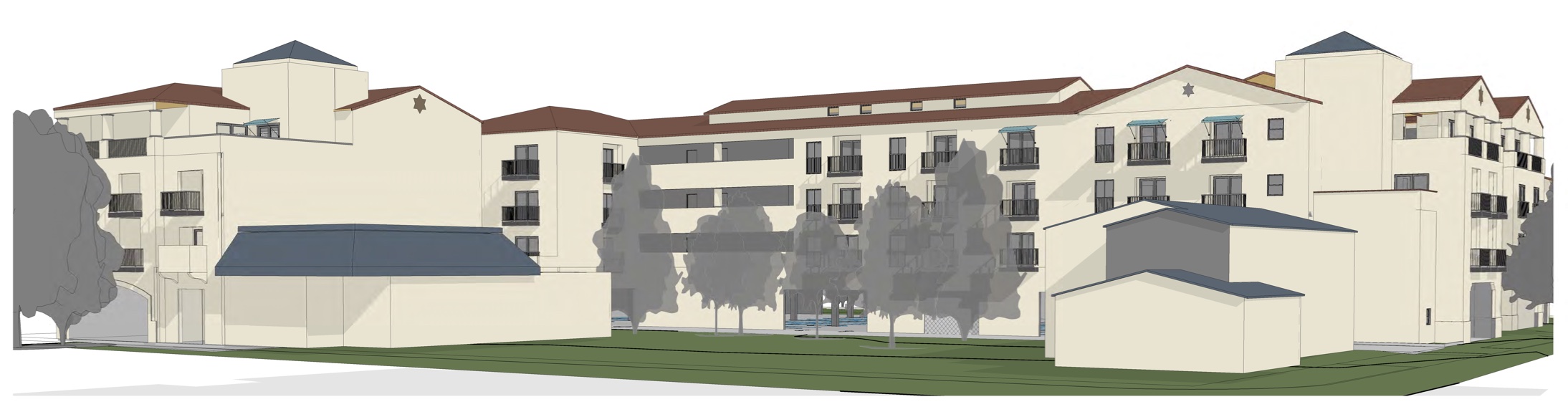 It’s being called Milpas Gardens, likely an homage to the nursery at that location for years (decades?). The plans don’t include a very good sense of the architecture—which is by Hochhauser Blatter Associates—but what we do get is very Courtyard by Marriott. Of special note are the five “bed and breakfast” hotel rooms along the eastern edge of the ground floor. (The floor plans below are for first, second, third, fourth floors, respectively.)