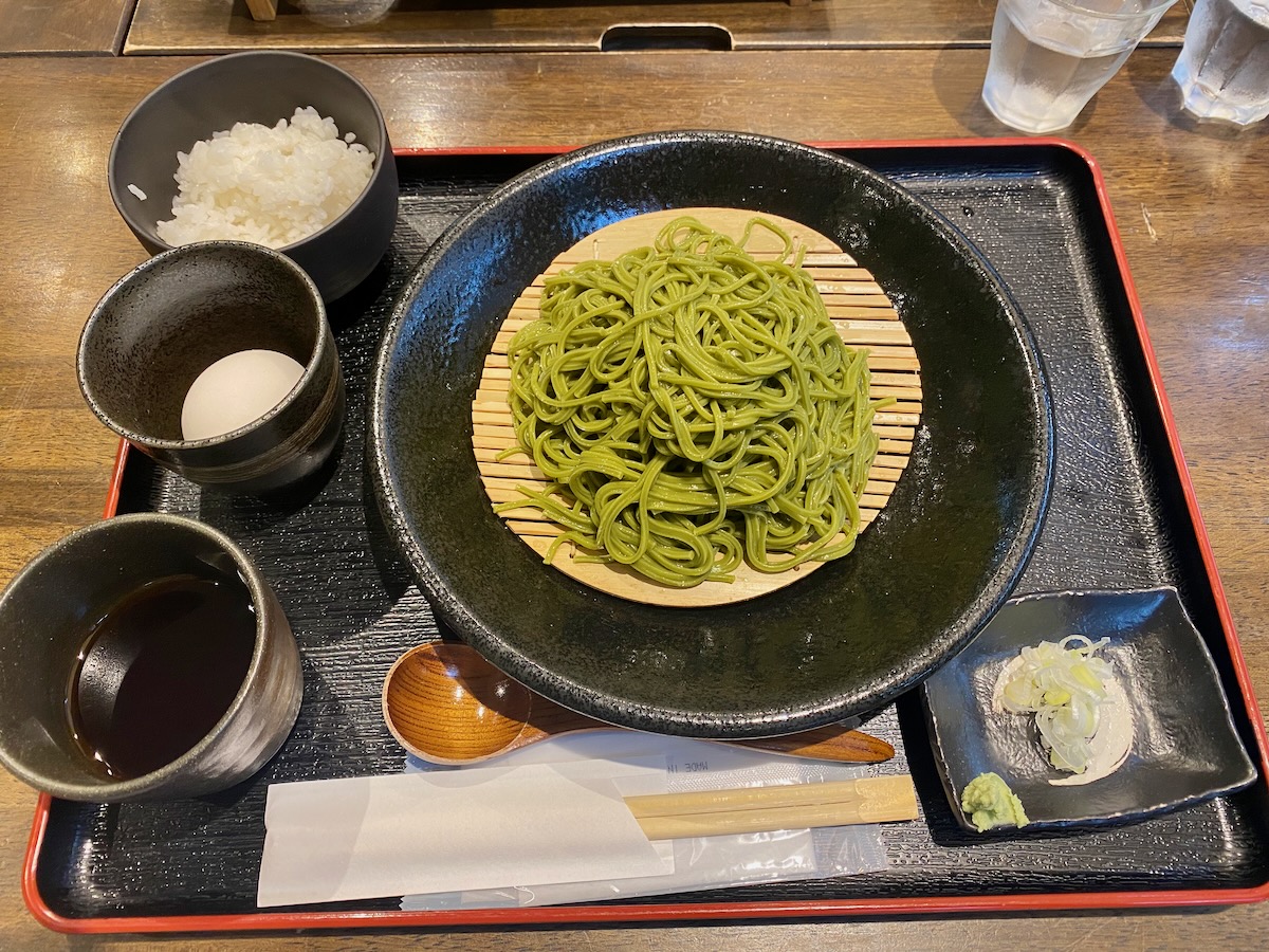 And we ate. One day, we landed at Chamise Shinkichi, a restaurant that specializes—i.e., it has one item on the menu—in soba made with matcha. In the dish to the left is a raw egg, which we were instructed to crack into the hot rice.