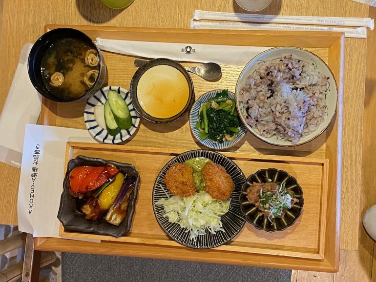 And I made sure we returned to Akomeya, a chain of gourmet food and more. We probably spent as much time browsing there as we did at the Hockney show. The outpost at La Kagu—a complex with books and fashion, although somehow we missed that part—also has a restaurant. I love a set menu when I’m in Japan. You get to try more, including dishes you probably wouldn’t order.