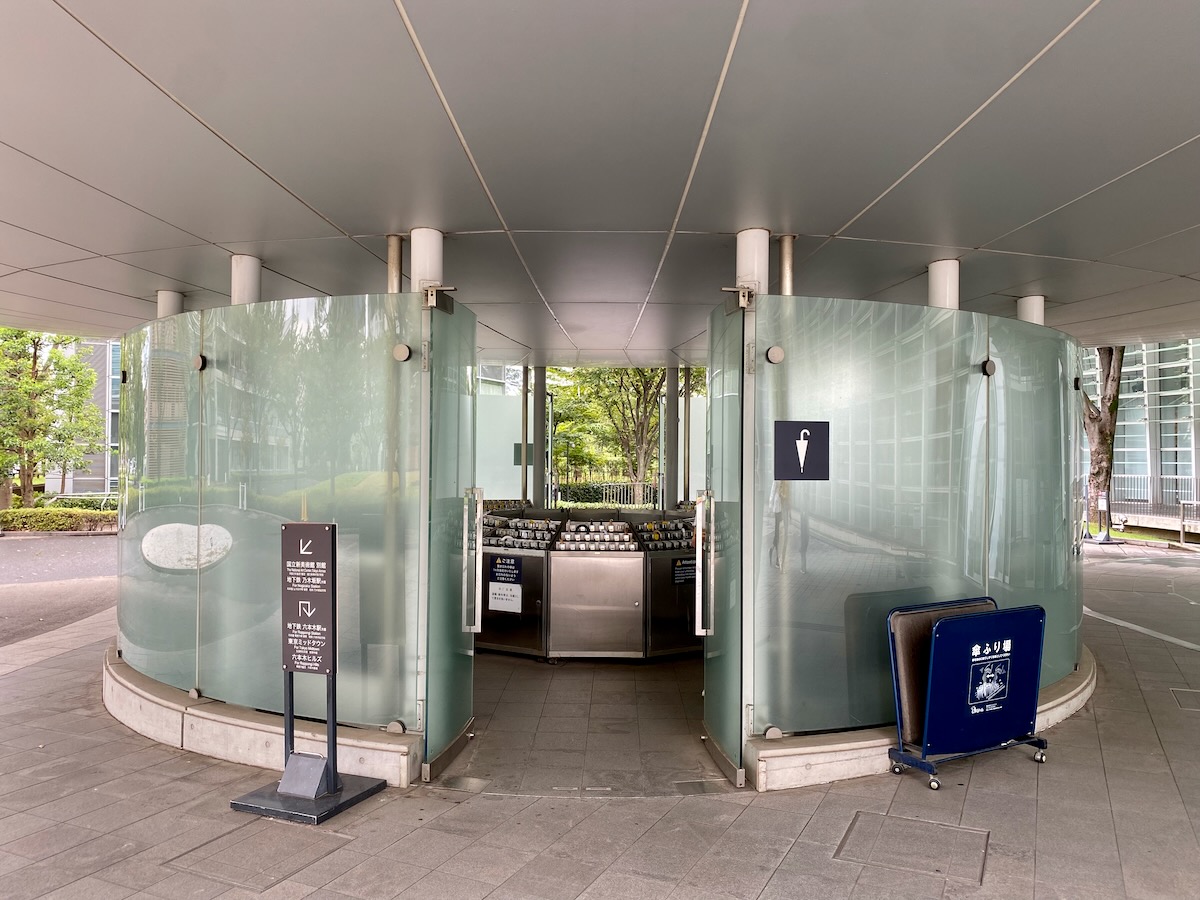 The separate building to check your umbrella—with a dryer outside—is very Japan.