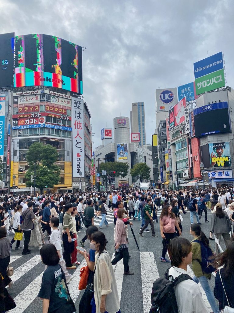Otherwise we walked and walked. We found a stylish stationery/design shop called Think of Things; we accidentally wandered into the Shibuya scramble crossing on a weekend (bad idea); we had a coffee at a cool little café called Cream of the Crop; we stopped at a supermarket so I could check out the pickles and potato chip flavors; and we justified a stop at Blue Bottle because we craved a good espresso—Japan is more into pour-over coffee—and we were rewarded with a quality pug sighting.