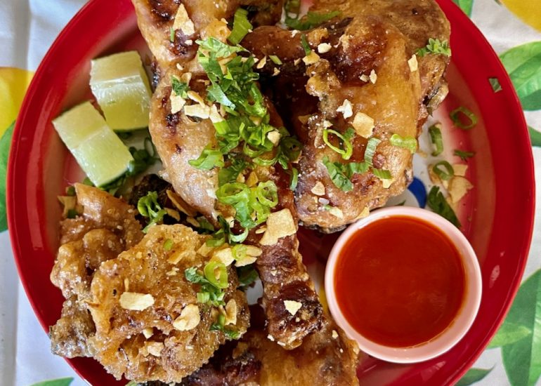 ••• I finally made it to Na Na Thai, the pop-up at Bar Le Côte in Los Olivos on Tuesdays. There are hurdles: it opens at 4 p.m.; there will likely be a line; and everything tends to sell out within a couple of hours. But it was a such a treat to have Thai food of this caliber—pictured above is the fried chicken, among the best I’ve ever had—and the atmosphere is a breath of fresh air, like the proprietors are doing something for kicks as much as profit. Here’s hoping that chef Nik Ramirez and manager Ashley Ramirez, both of whom work for the Bell’s empire, can turn it into more than a moonlighting gig. P.S. You pay for food with cash or Venmo, while you can use a credit card at the bar for beer and wine.