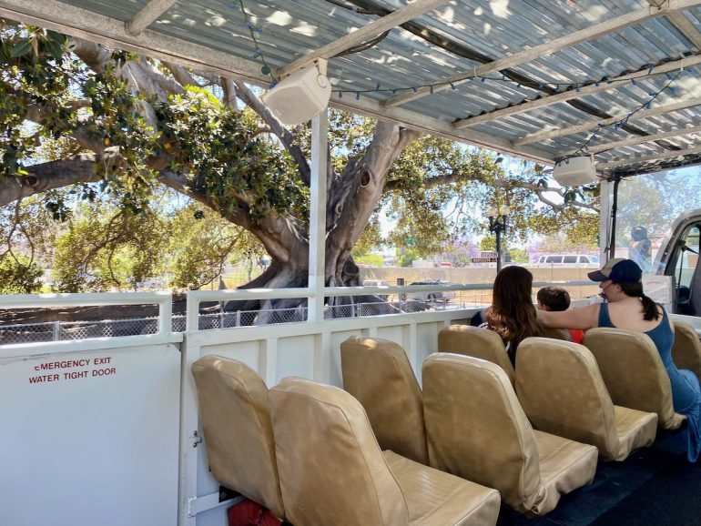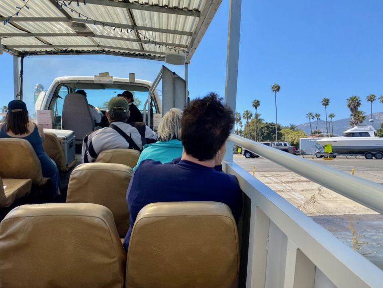 I’m sure there are days when the tour sells out, but at 2 p.m. last Monday, the vehicle was maybe half full. People who book online get to board first, which is only fair because the company says that if they don’t show up at least 10 minutes prior, it can sell their tickets to walk-ups. And there’s nowhere shady to wait on the Cabrillo Boulevard sidewalk.