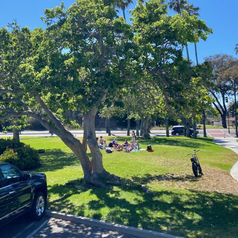 “Anybody onboard from Santa Barbara?” asked the guide at the start. No one raised a hand, including the loner in an off-color shirt. “Good! I can make up whatever I want!” I wouldn’t say that’s what happened, exactly, but amid the recitation of historical tidbits were claims that seemed dubious: the Funk Zone got its name from the smell of seafood warehouses; the Carrillo Recreation Center is home to one of the largest Zumba classes in the nation; the county courthouse is among of the world’s most photographed buildings; a thousand people can fit under the famous Moreton Bay fig on W. Montecito Street…. Assuming that some of the info was accurate, I did learn a few things—such as the courthouse’s sunken garden is where the foundation once was for the old courthouse destroyed in the big 1925 earthquake, and the Moreton Bay fig inspired the Tree of Life in Avatar.
