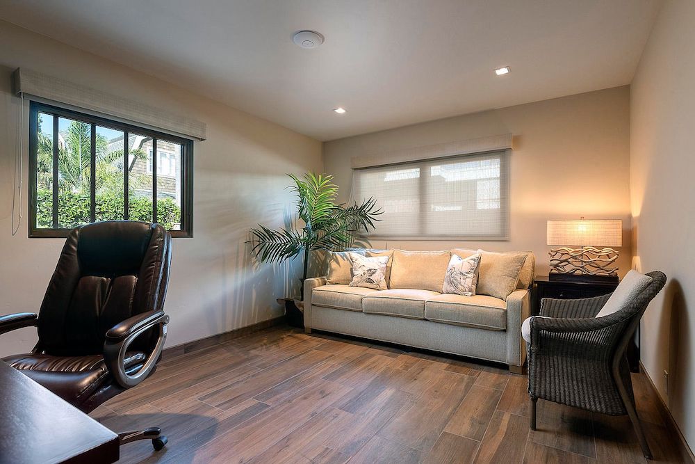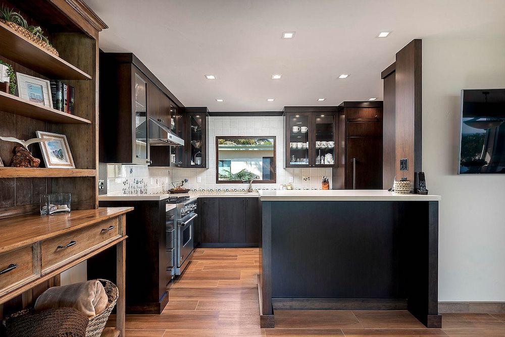 The house is small, just 1,400 square feet, with interiors that range from undistinguished to acceptable. The kitchen, in particular, is a standout. According to the listing, it has “custom walnut cabinetry, hand painted tile backsplash, quartz counters and Viking and SubZero appliances.” The floors throughout are “wood tile”; perhaps that’s preferable to real wood in an oceanfront climate?