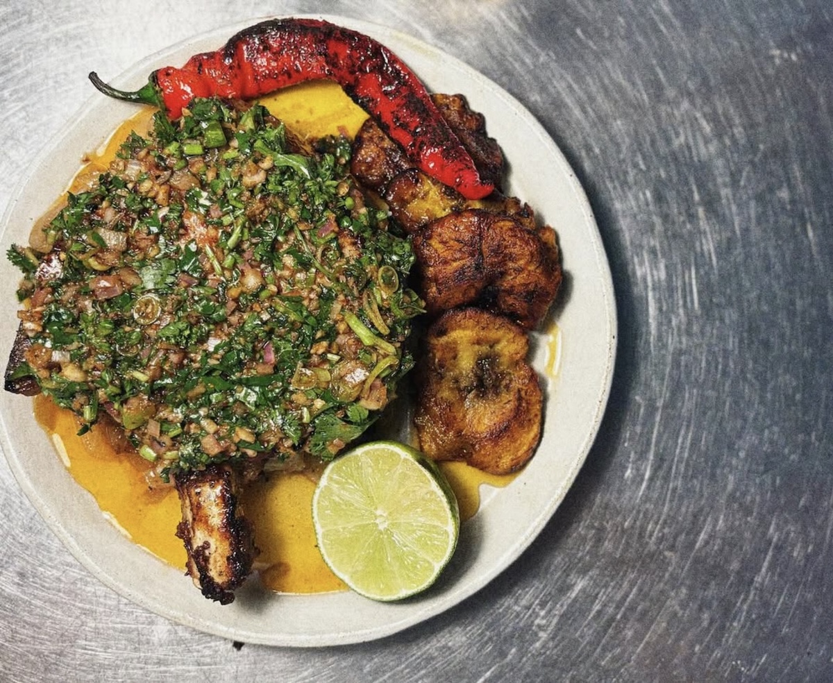 ••• Revolver chef-owner Nick Bodden has launched a pop-up at the restaurant called Trixy the first two Mondays of each month. (The next two are July 7 and 14.) “It’s very much in the spirit of what Linden Hall would’ve been,” he says, referring to his Carpinteria restaurant that didn’t come to fruition. “A very neat à la carte menu along with a handful of wines by the glass.” Above: Berkshire pork chop, gremolata, fried plantains, and Jimmy Nardello peppers, from last month.