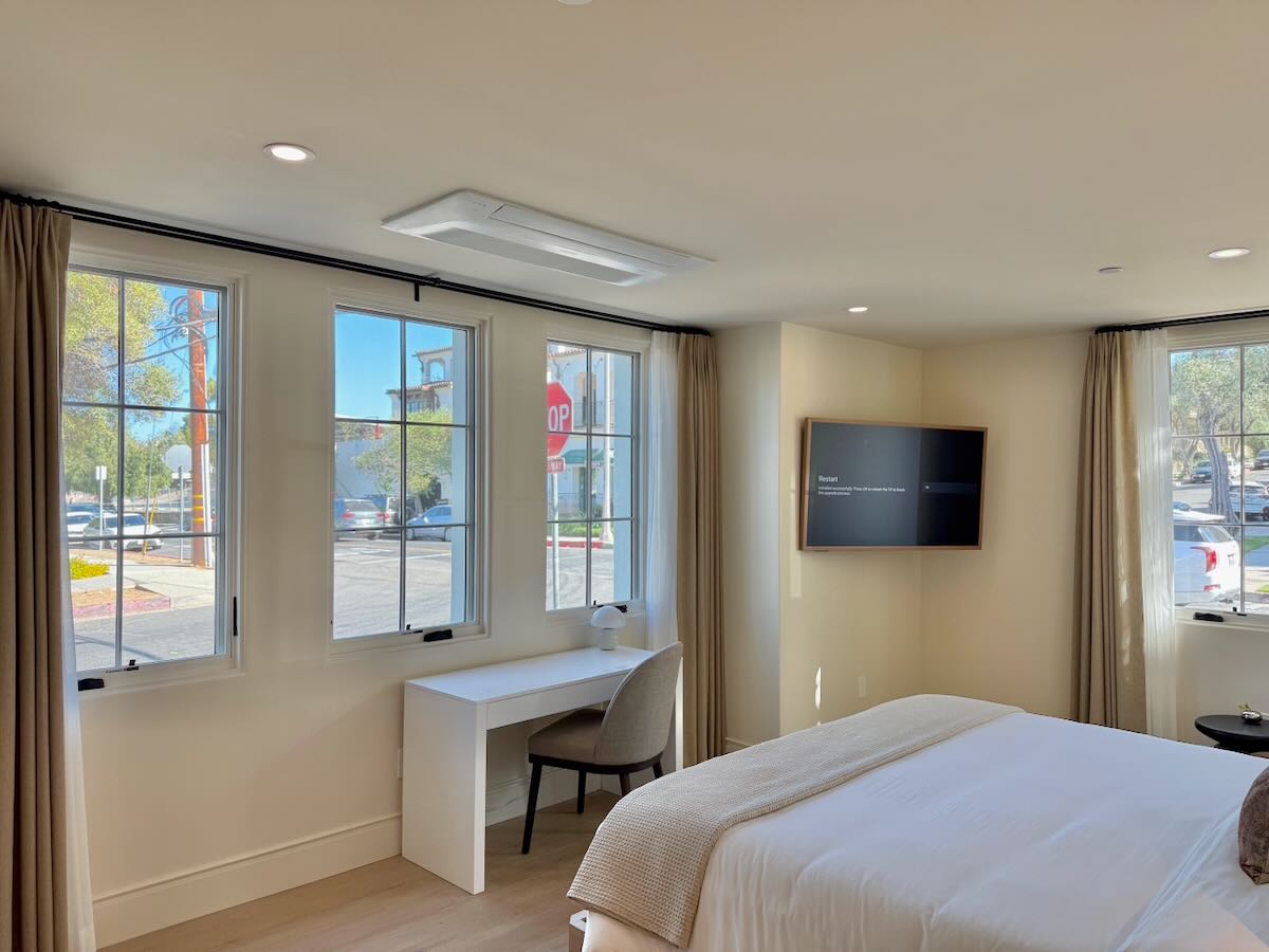 ••• Casa Riviera, the 30-room vacation-rental hotel—there’s no staffer on site—at the corner of Garden Street and De La Guerra Street has opened. I already mentioned how good it looks from the outside (especially compared to days of yore), and the rooms are sharp, too. (The second-floor ones are preferable, of course.) Mid-week in August, a double room starts at $414 for a 246-square-foot room on the ground floor, plus $65-per-stay cleaning fee and $50 per night in local taxes, for a total of $529.