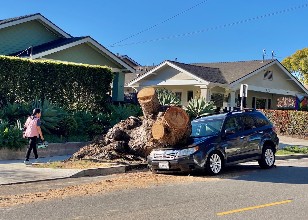 ••• Two of the Italian stone pines on E. Anapamu Street were casualties of the recent storm. —Edhat