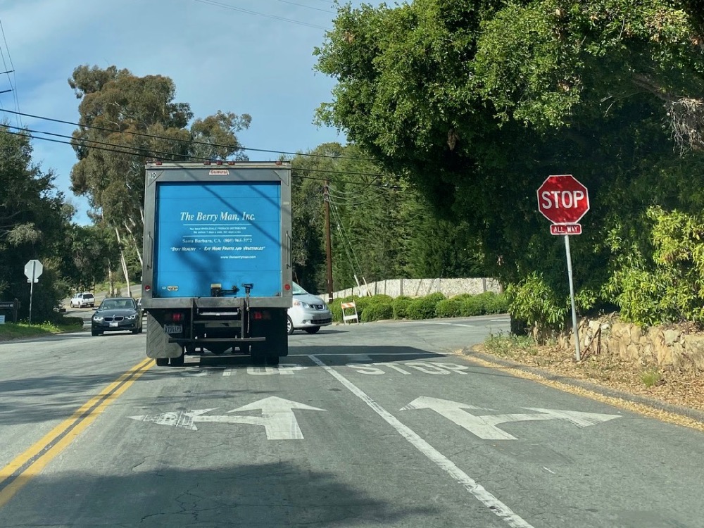 ••• There’s an amusing letter from Danny Eades in the Montecito Journal about people’s inability to comprehend the lane markings on Hot Springs at the intersection of Middle Road and Sycamore Canyon Road. You’re allowed—encouraged!—to use the right lane to go straight.