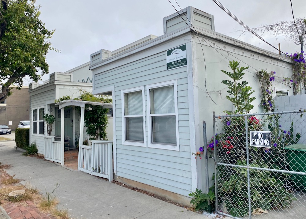 ••• After I posted about the building at 124 W. Cota, M. asked about the bungalow court across the street at 610-612 Bradbury Avenue. I turned once again to John Ummel of Santa Barbara Free Walking Tours, which has a new tour of that part of town. He pointed out that the city has designated the property a Structure of Merit, and project planner/architectural historian Nicole Hernandez directed me to this report about what the city calls Vallikett Bungalow Court. There isn’t much about the history, other than the four bungalows were built in 1914, with the two-story duplex in back following two years later.