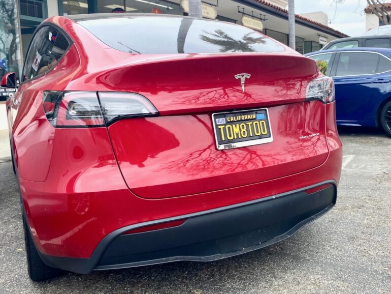 These are great! I have an ongoing game with my husband and friends called Tesla D****ebags and the rule is the vanity plate has to reference that it is a Tesla, it is electric or that is is eco friendly. We have seen a shocking amount in Santa Barbara alone, over 35 of these plates! Some favorites are: TESLA SB, THX A WAT, EV WHIP, 0 CARBZ, JA VOLT, MUSK and simply, TESLA.