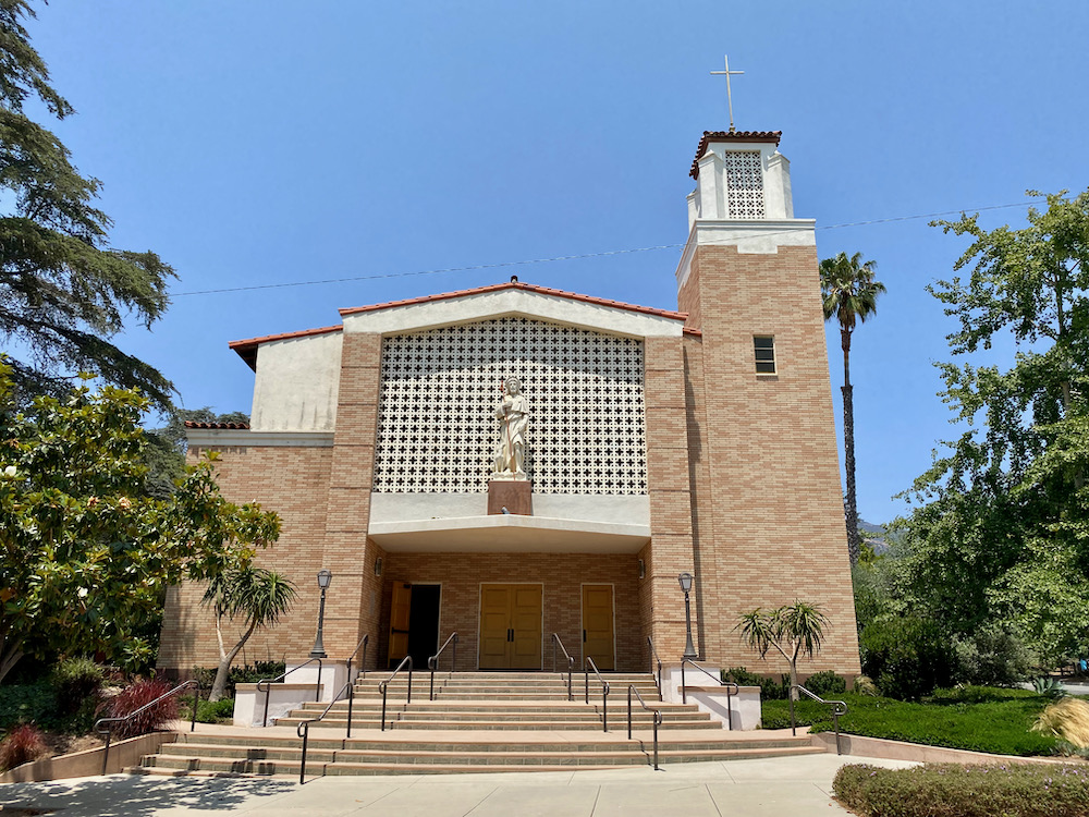 The crosswalks were near a Catholic church and school. The screen, if that’s the right word, on the church facade struck me as rather Islamic in style.