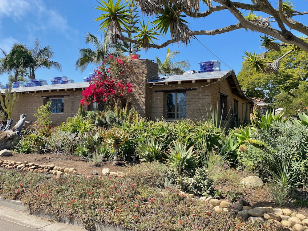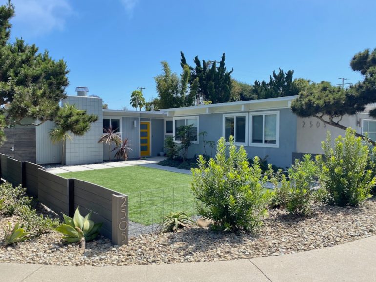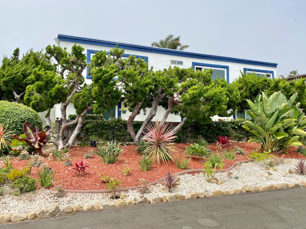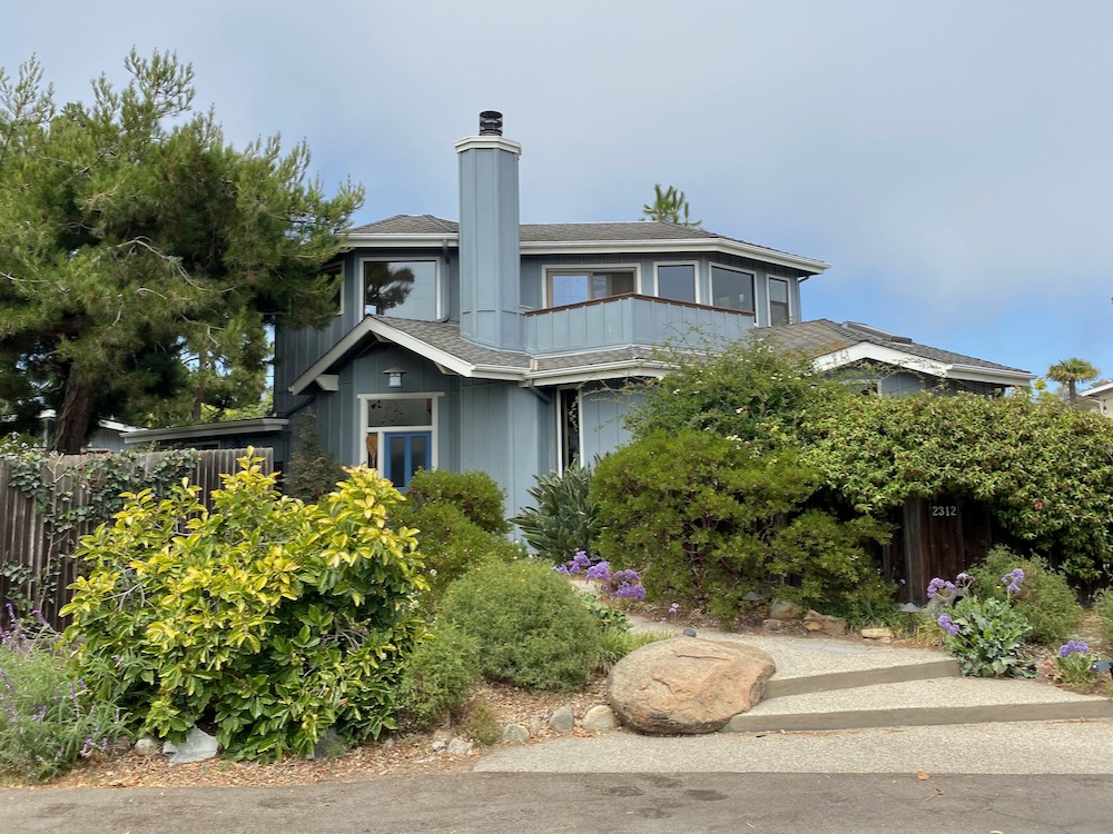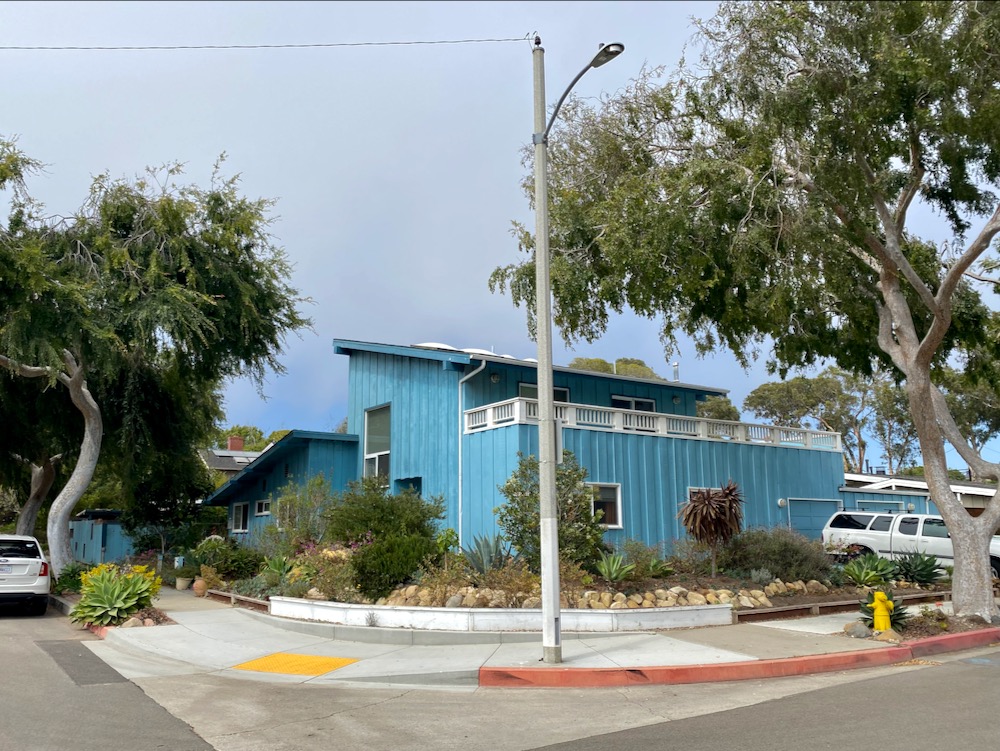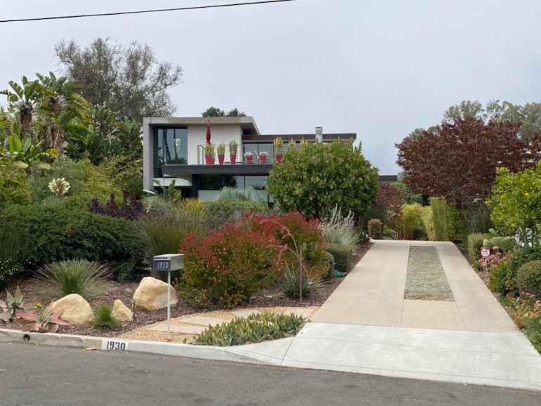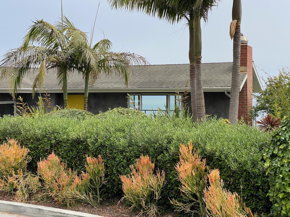 By this point, we had wandered away from the oceanfront streets of Edgewater Way and Medcliff Road and were looping back toward the car. The architecture remained varied—check out this sprightly little midcentury and a classic adobe.