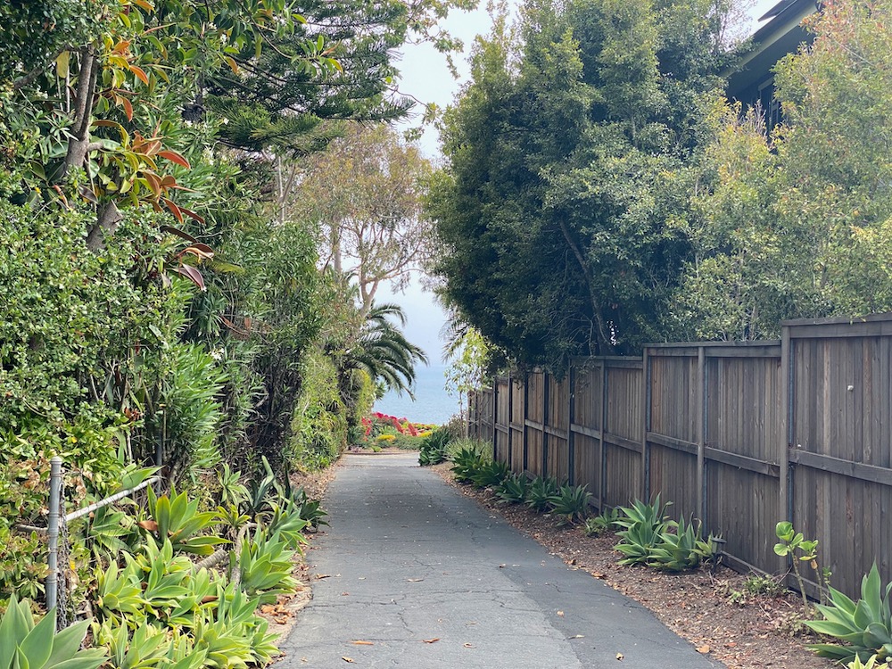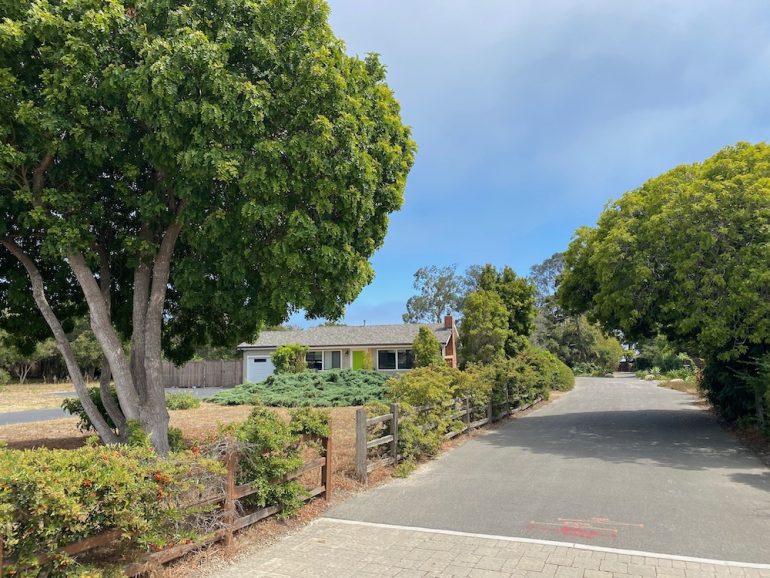 We explored a shared driveway, covetous of the large lot with the petite house, impressed by the fancy oceanfront house, and delighted by the throwback that feels like it belongs in Santa Ynez.
