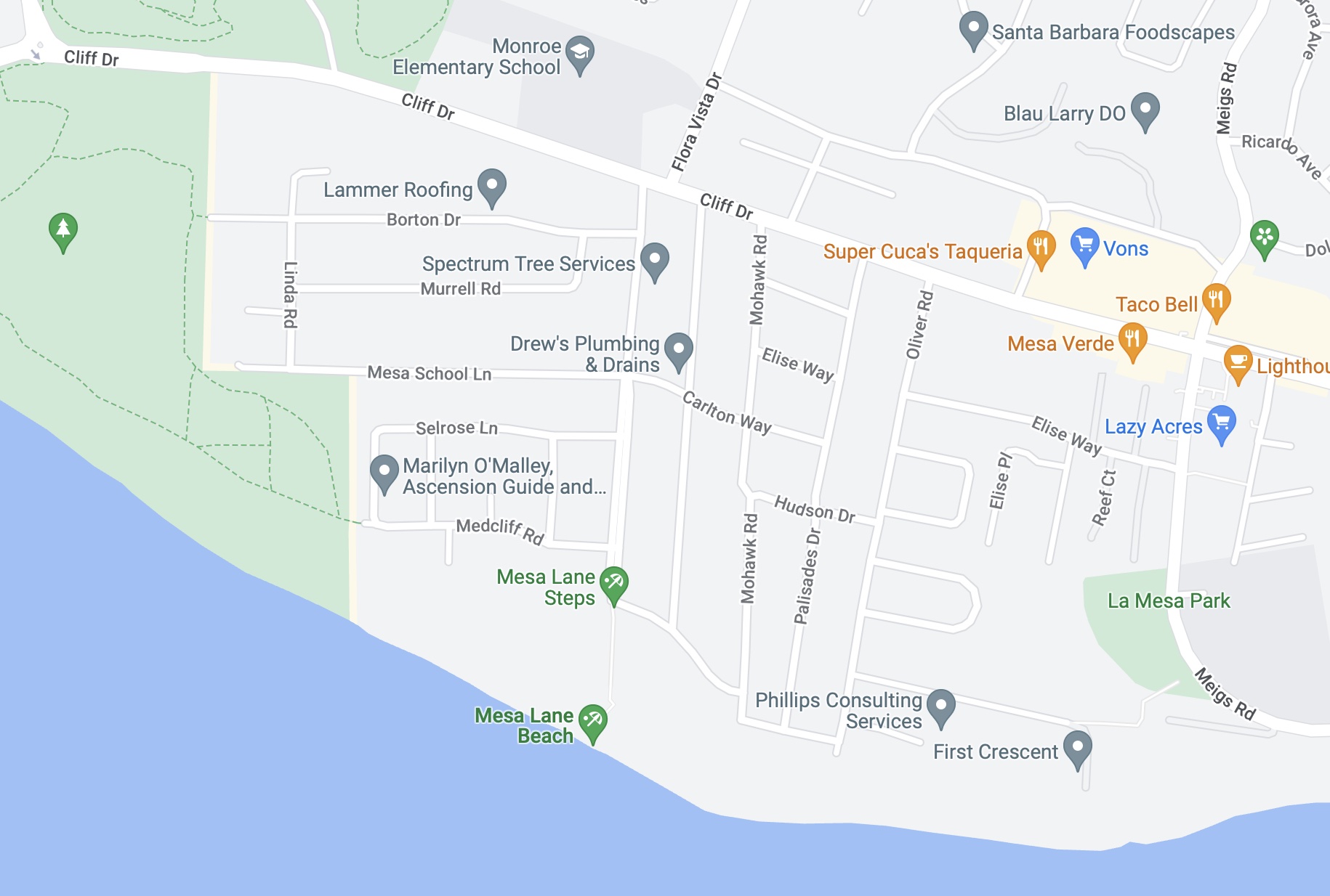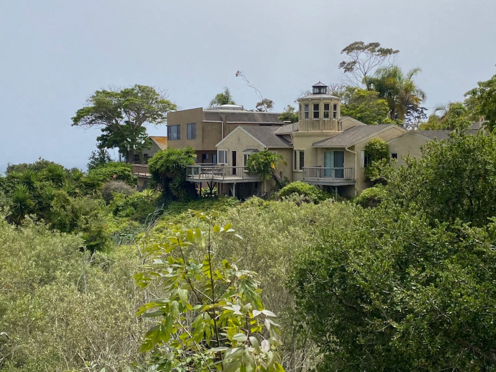 Midway through the walk, we ran into my friend from swimming. He said I should feel free to follow up with any questions, so I later texted about the woodsy compound at the corner of Mesa Lane and Medcliff Road. He asked around: originally part of Mike Love’s compound at 1 Mesa Lane, they were sold off in the early 1980s. Oceanfront 1 Mesa Lane, meanwhile, is a fascinating property; the listing photos from late 2019 are absolutely worth a detour. Five-sevenths of it sold in June 2021 for $10.375 million.