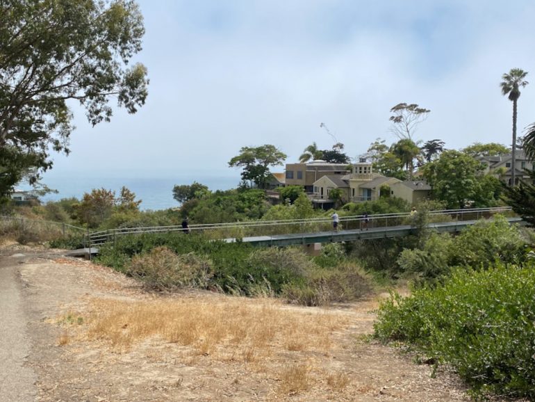 The 1956 house at 1919 El Camino de la Luz is currently on the market (and in escrow) for $3.695 million, and it certainly has a retro charm—no one is building anything that modest close to the ocean anymore. Directly below it, on the slope of the bluff, is 1921 El Camino de la Luz ($2.9 million, and also in escrow), a vacant lot on the market for ten months. It seems like a tough proposition to get by the Coastal Commission, but the payoff would be huge.