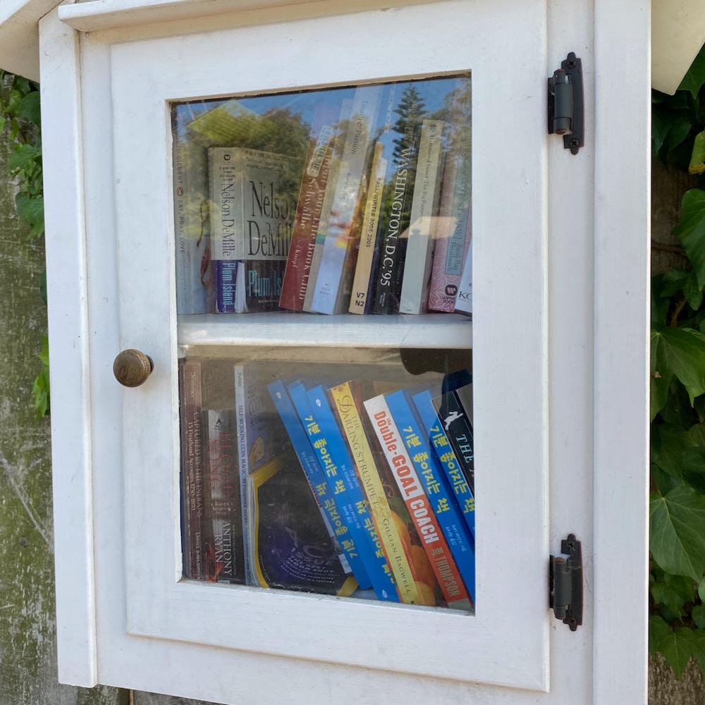 You’re guaranteed to run into a street library in any Santa Barbara neighborhood, and I’m guaranteed to stop and browse the shelves. I’m not sure which language this is, but I suspect there isn’t a large enough reader pool to justify five copies of the same book.