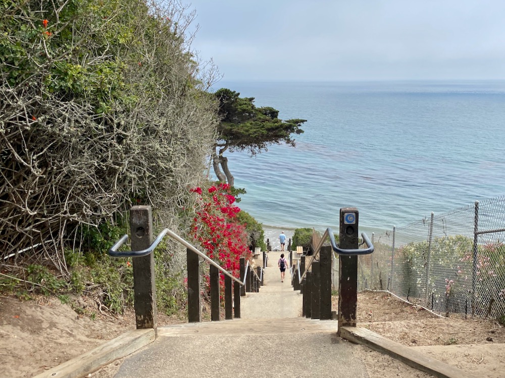 Adam had never walked down the Mesa Lane Steps, although we probably would’ve taken them even if he had. How can anyone resist a long set of stairs leading to the beach?