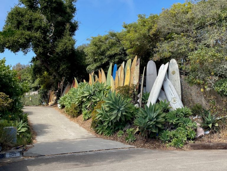 There may be nothing so quintessentially West Mesa as this surfboard fence—except perhaps a vintage sky blue Bronco.