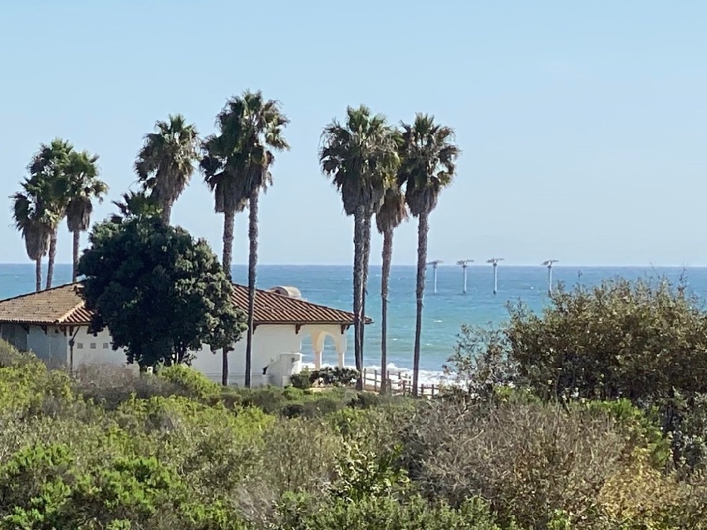 I was golfing Sandpiper and one of my friends, a pilot, saw them and said they are guides for planes flying into SB Airport. It makes more sense than remnants of a pier- those columns are really, really high. It doesn’t seem to be the right scale for an old pier. I wonder if SBA might disabuse us of this theory.