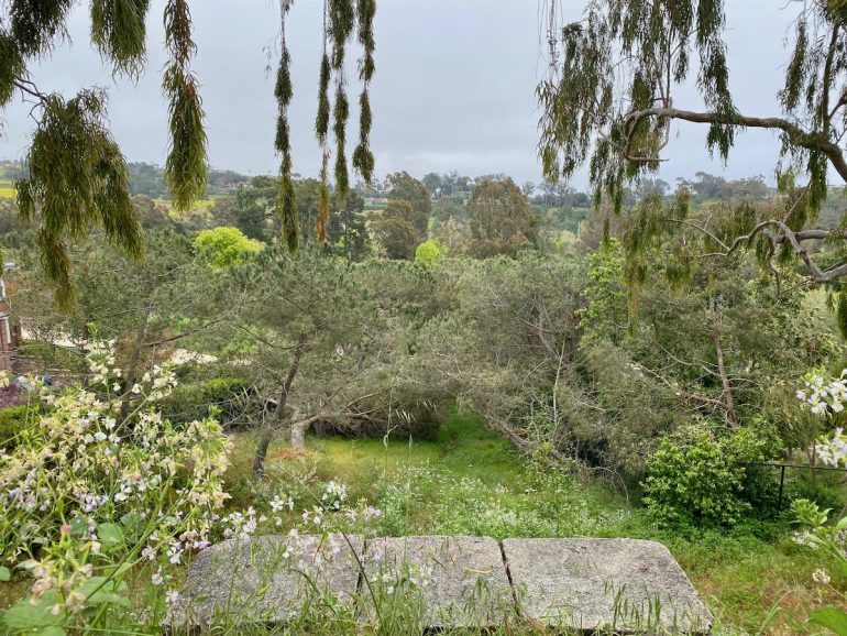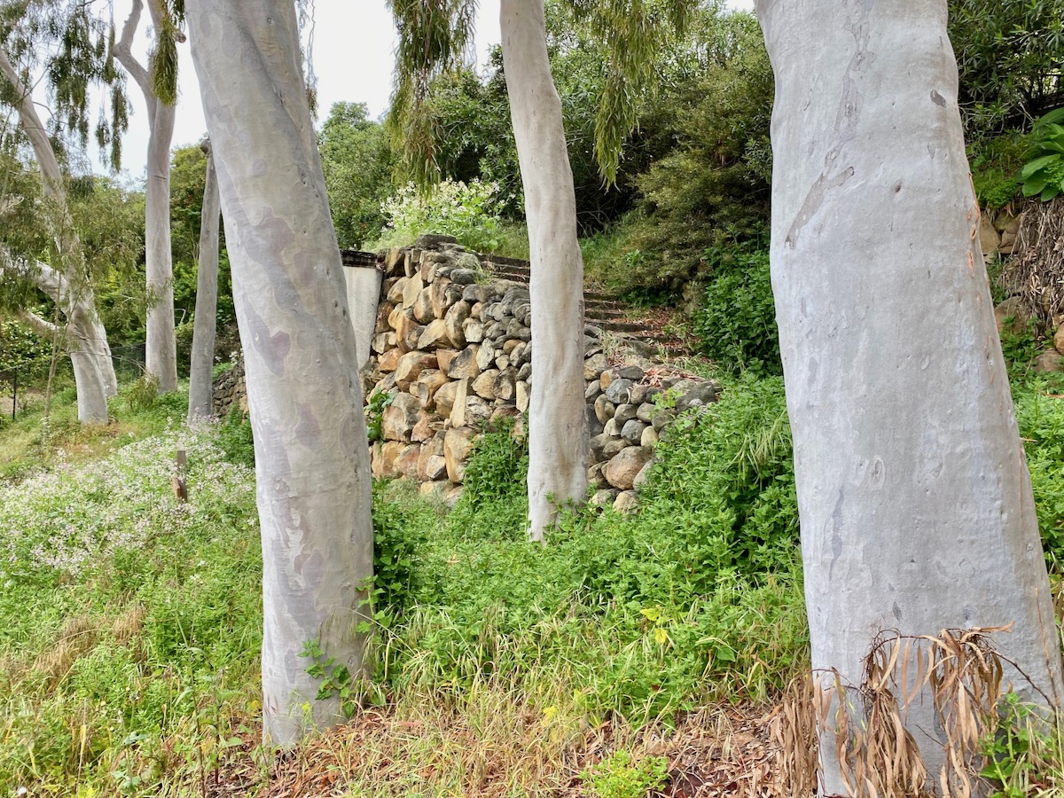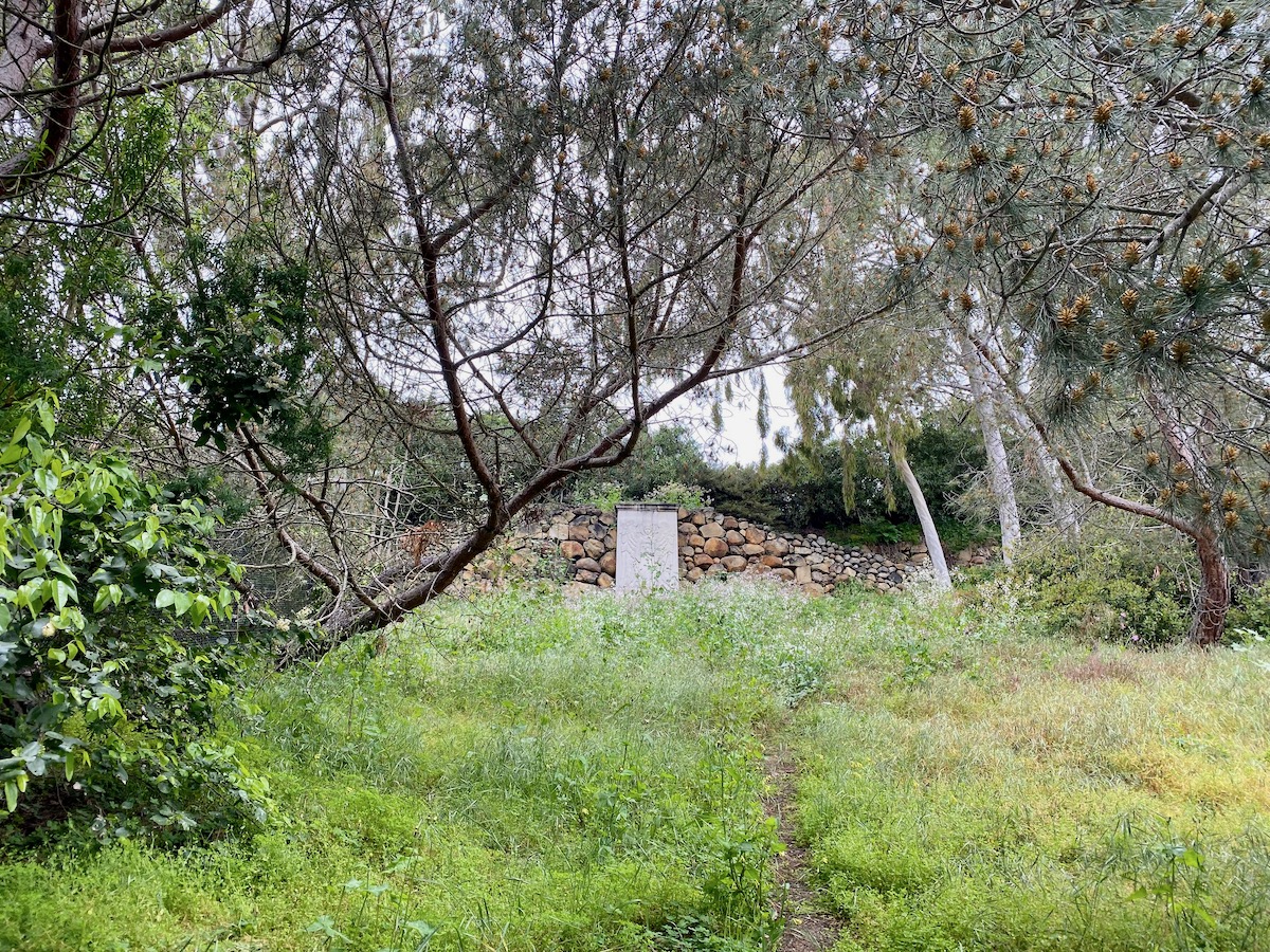The trail off Sheffield goes to Gould Lane, where you turn right and then look for another MTF trail sign on your left. (It’s just before the big brick house at the corner of Gould Lane and Jelinda Drive.) According to the Montecito Journal, Clara Gould was responsible for the the allée of pines leading to the memorial.