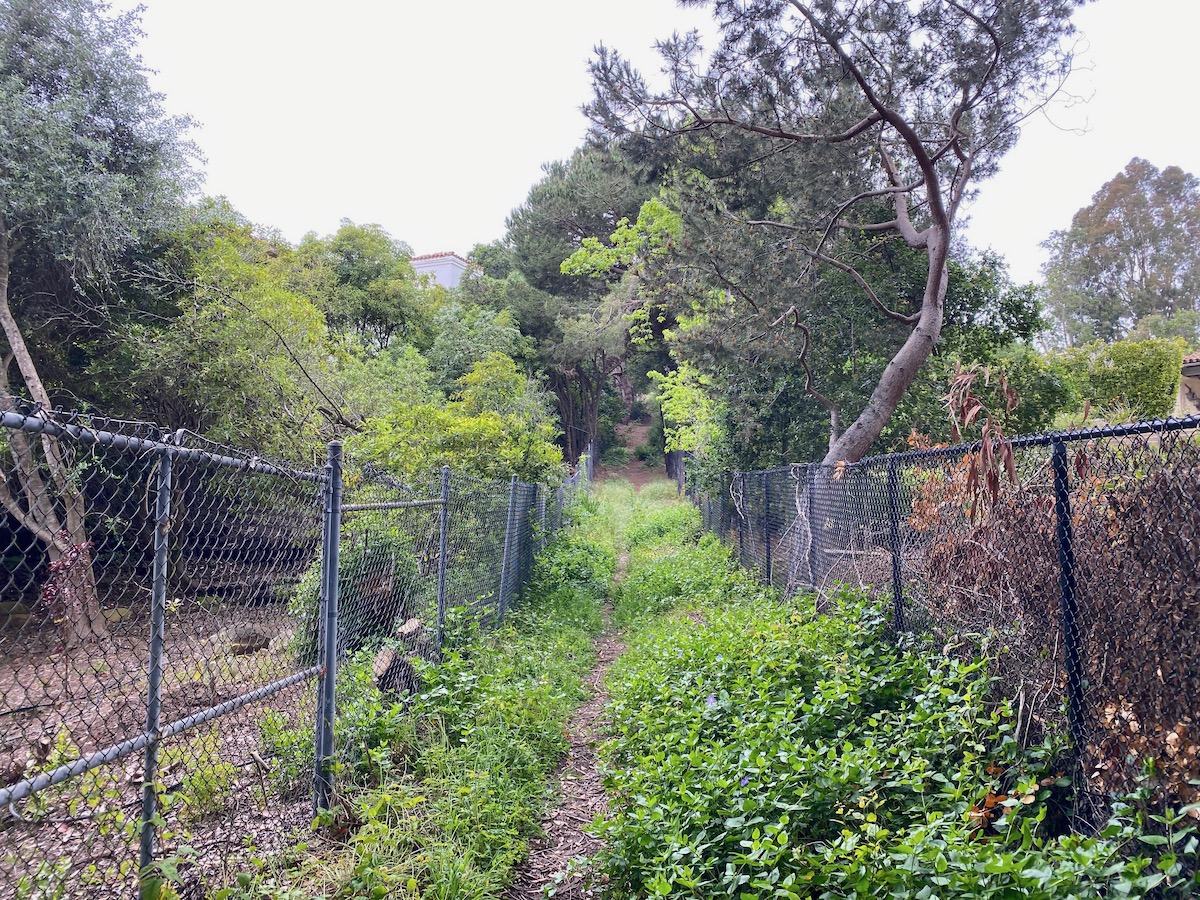 Alternatively, to avoid the pedestrian-unfriendly part of Sheffield, look for an unmarked path between two fences on San Leandro Lane, just west of Sheffield. It winds its way to the part of Sheffield that’s easier to walk.