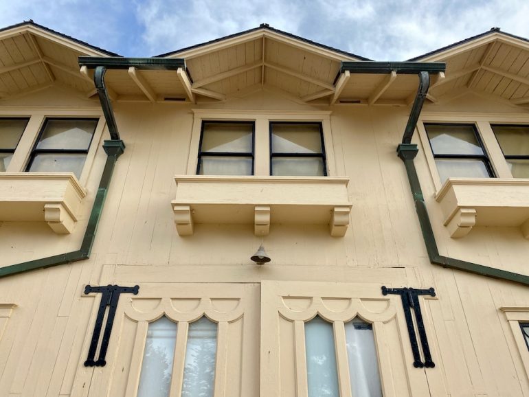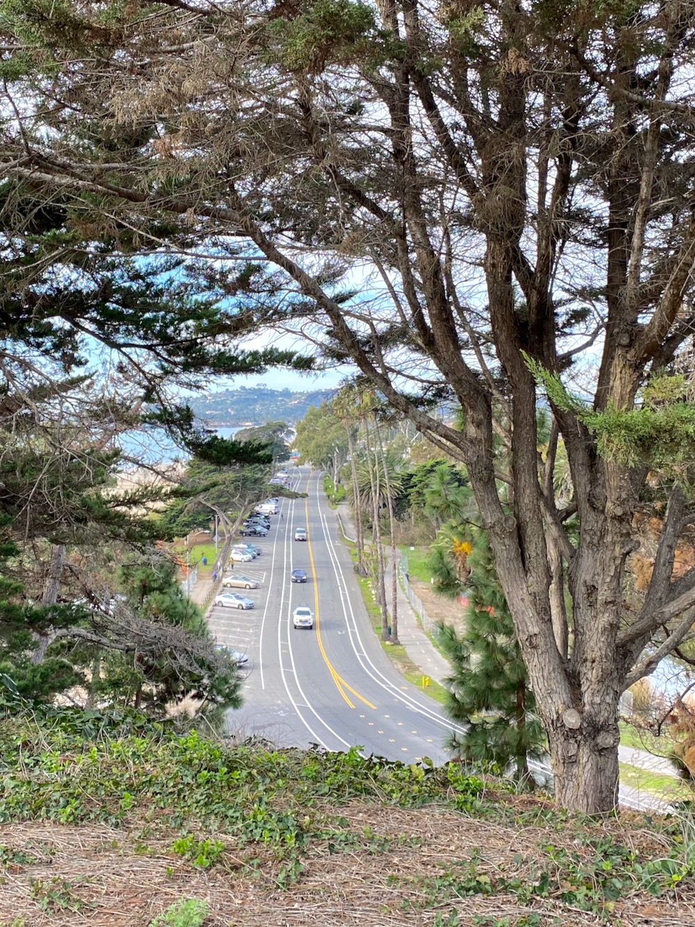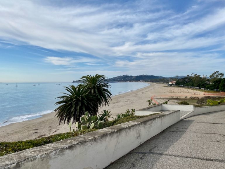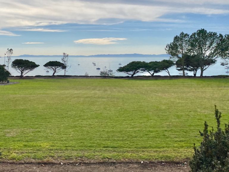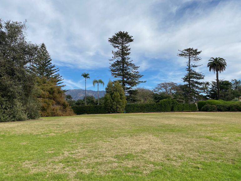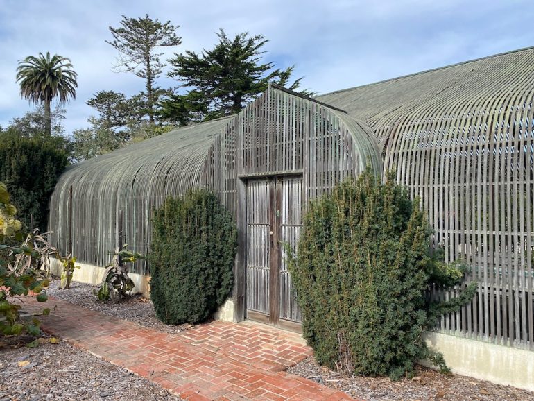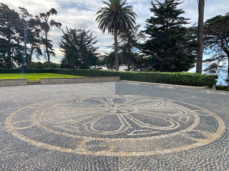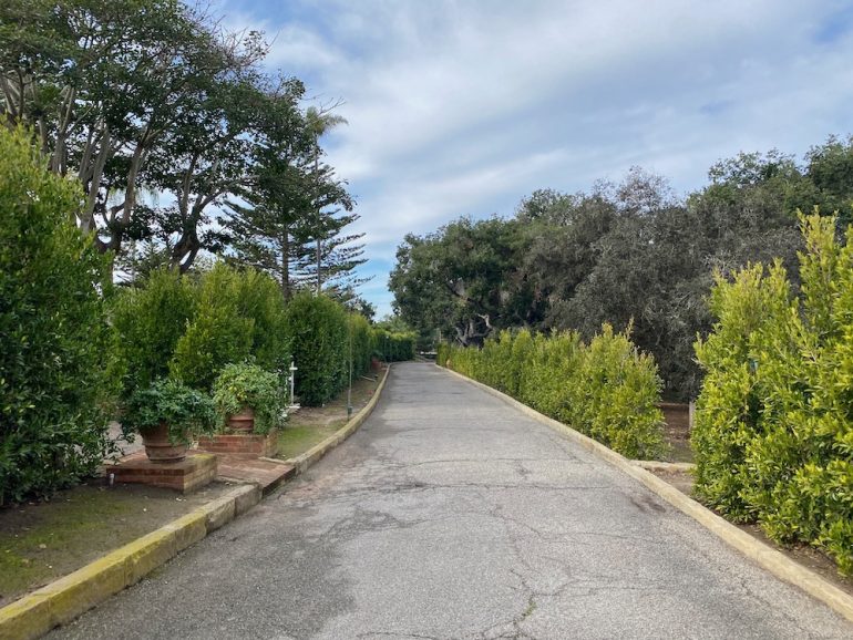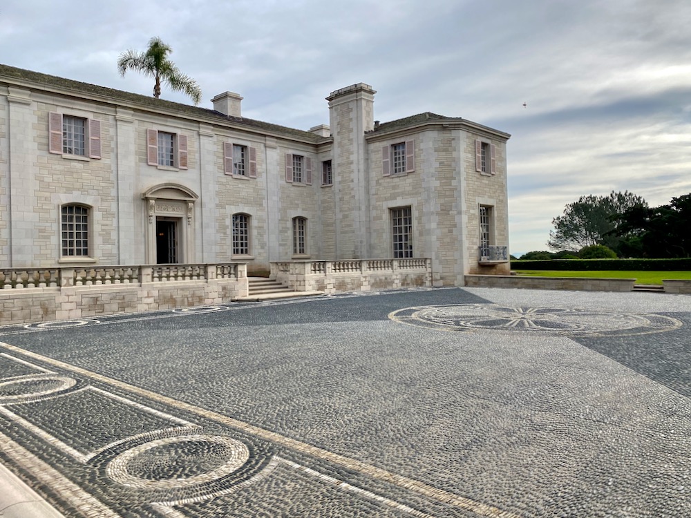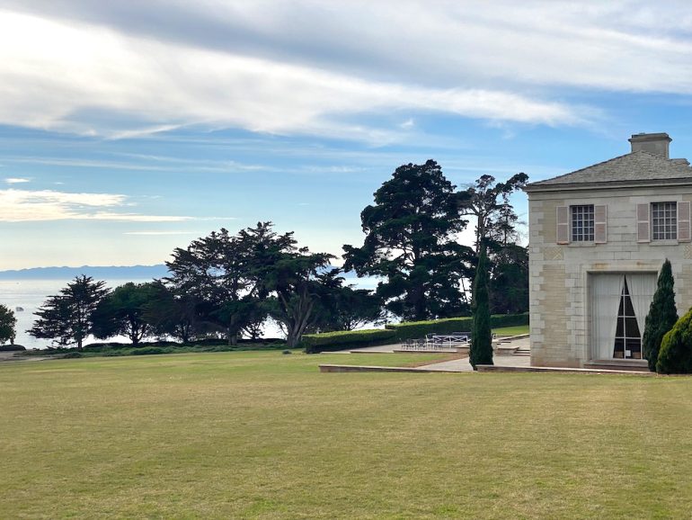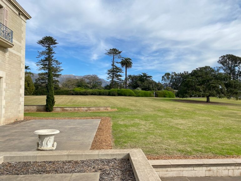 The driveway is one-way, and for some reason you’re directed to enter via the exit, which means you sneak up on the estate from behind instead of getting the grand, ocean-view arrival that architect Reginald Johnson surely intended. The parking area has a novel view of Cabrillo Boulevard.