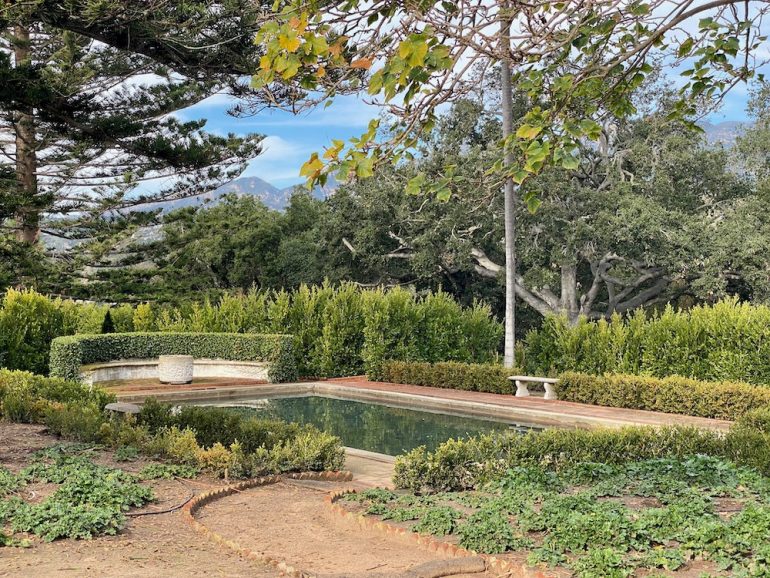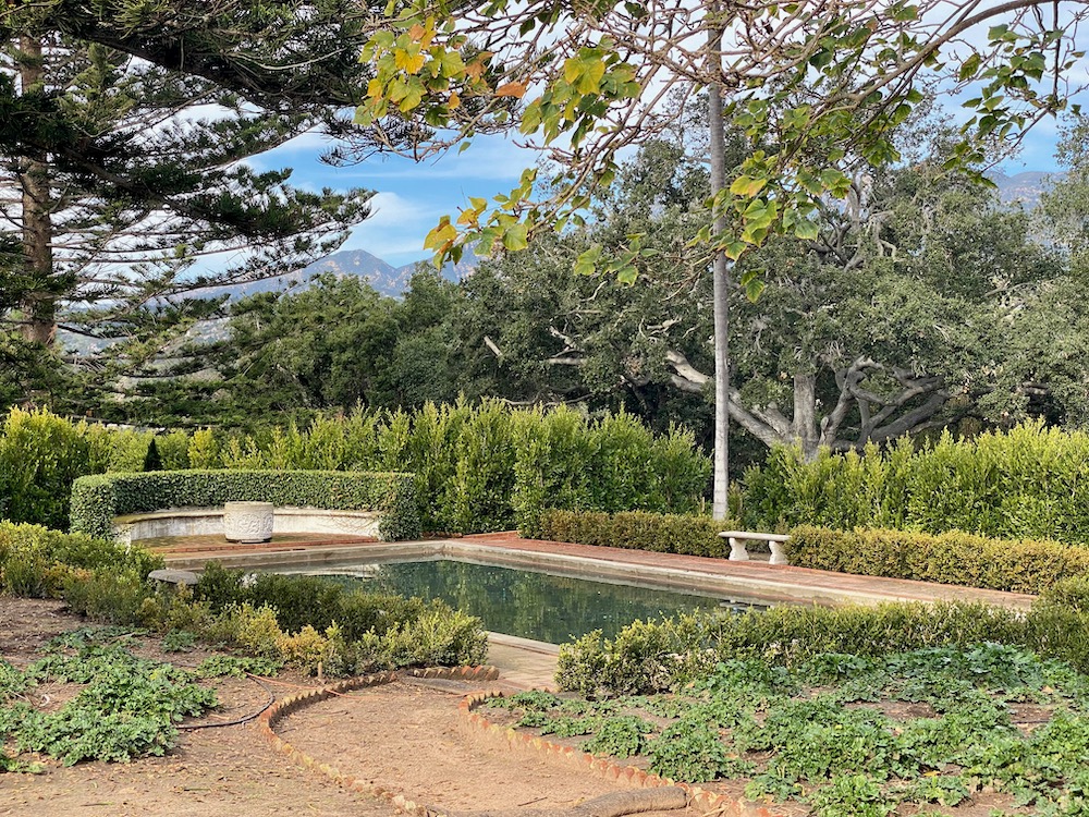 Our tour was the first one, and as a result, it only had six guests, along with three docents (one from the Santa Barbara Historical Museum). After we oohed and aahed over the motor court—which surely inspired the one at 491 Pimiento Lane*—we were given a bit of back story about the house. The short version: Anna Clark, widow of copper baron William Andrews Clark, built it in 1933 as a vacation home but didn’t use it much. After she died, her daughter Huguette never visited but refused to sell (including to the former Shah of Iran and Ty Warner, according to the guides). Her wish was that it become a center for the arts after her death. (*Update 12/21: Jo says that 491 Pimiento Lane’s motor court was actually inspired by Casa del Herrero.)