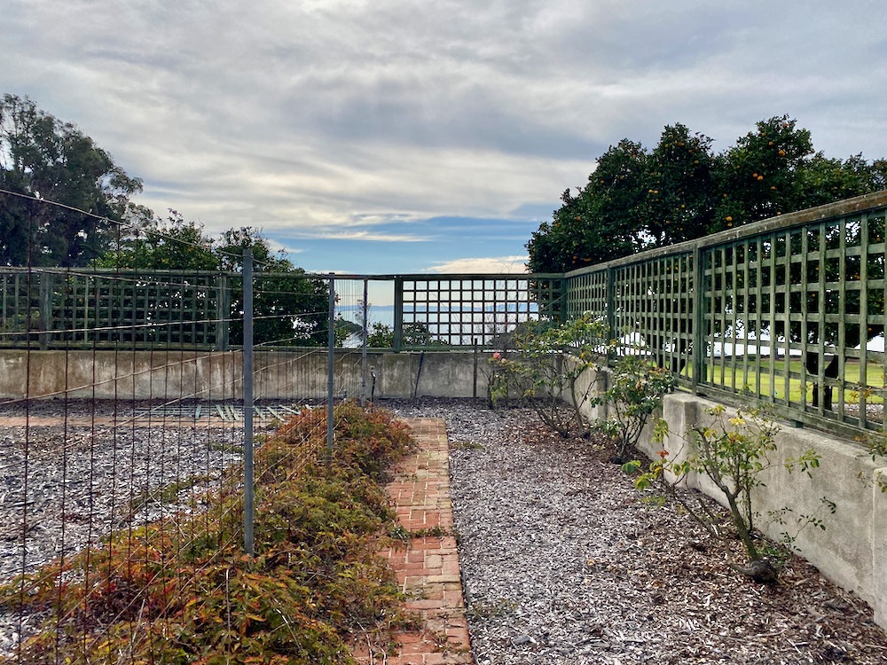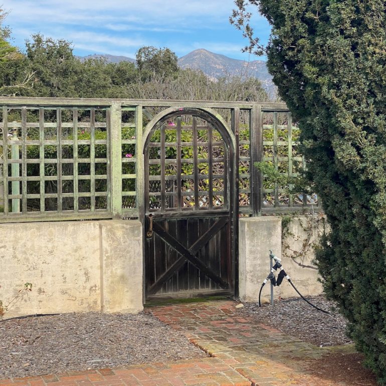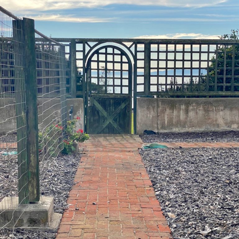 The garden had marvelous character, even if not much is living there besides kiwi plants, of all things. Love the wooden gates….