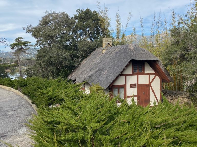 The driveway is one-way, and for some reason you’re directed to enter via the exit, which means you sneak up on the estate from behind instead of getting the grand, ocean-view arrival that architect Reginald Johnson surely intended. The parking area has a novel view of Cabrillo Boulevard.