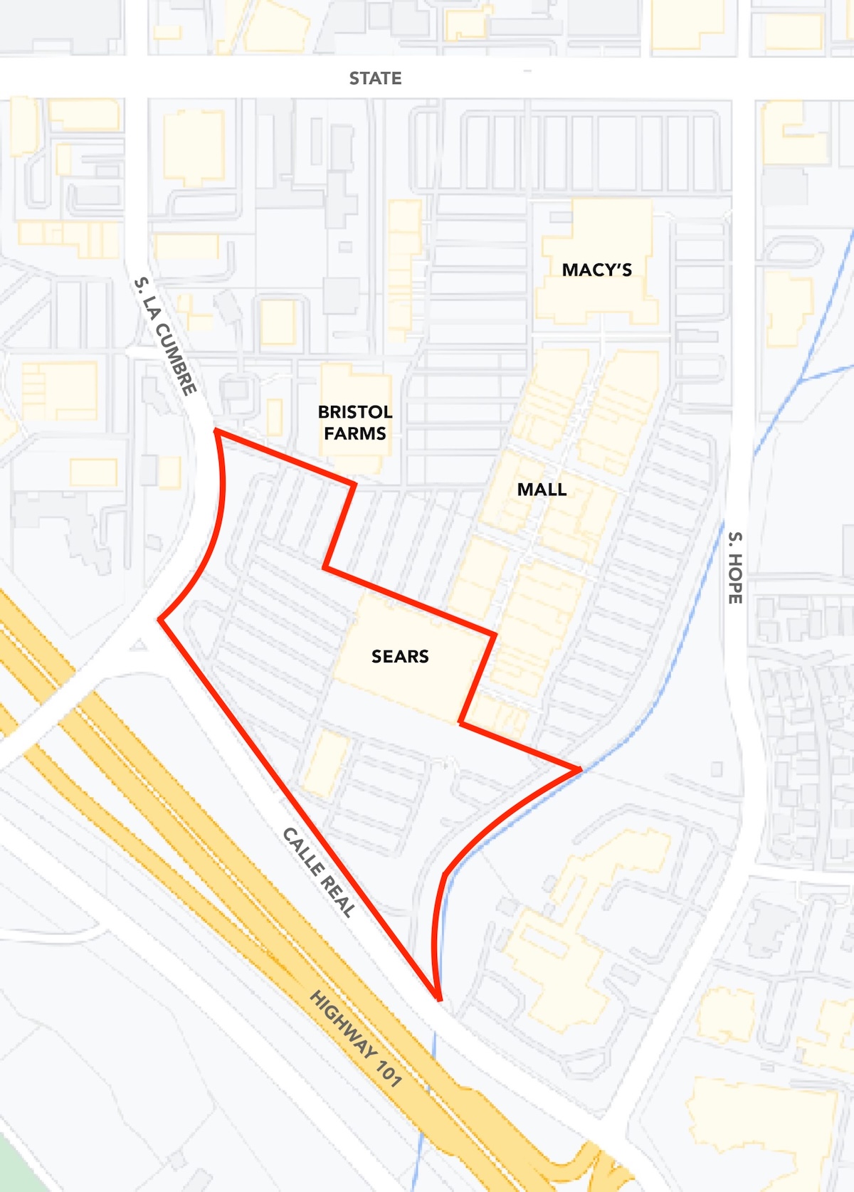 ••• We’ve known for a while now that the owner of the La Cumbre Plaza lot once home to Sears has been working on a plan to redevelop it; now we know with what. A preliminary housing development form was submitted two four-story buildings with 443 apartments total. The developer has until May 19 to submit a formal application. P.S. The big mixed-use development (with up to 700 apartments) on the Macy’s lot is called The Neighborhood at State & Hope, and there’s a website about it.
