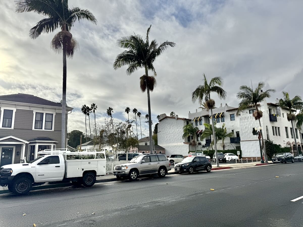 ••• Third, the car wash at 524 N. Milpas Street (Haley/Cota) is proposed to be demolished, and the lot combined with 518 N. Milpas Street (La Pachanga). The explanation: “Listed on the Historic Resources Inventory, [518 N. Milpas was] constructed in 1925 by Elmer Whittaker in the Spanish Colonial Revival style. Proposal for a lot merger and to demolish the non-historic car wash building at 524 N. Milpas Street and non-contributing portions of the building at 518 N. Milpas Street to construct a new 23-unit multi-story residential apartment complex […] incorporating the historic façade on 518 Milpas into the project. The project includes 20 covered vehicle parking spaces onsite and three uncovered parking spaces offsite. Project is adjacent to historic Structures of Merit at 514-516 N. Milpas Street, and all the buildings from 502-516 are Structures of Merit at they were all built together as a commercial street front.)” Moreover, the “unit mix includes four studios, two one-bedroom units, three-three story townhomes, 14 two-bedroom units. Units ranging in size from 487 sf. to 2, 080 sf. with an average unit size of 924 sf. Two of the units will be designated for moderate inclusionary housing. Two of the units will be designated for very low income inclusionary housing.”