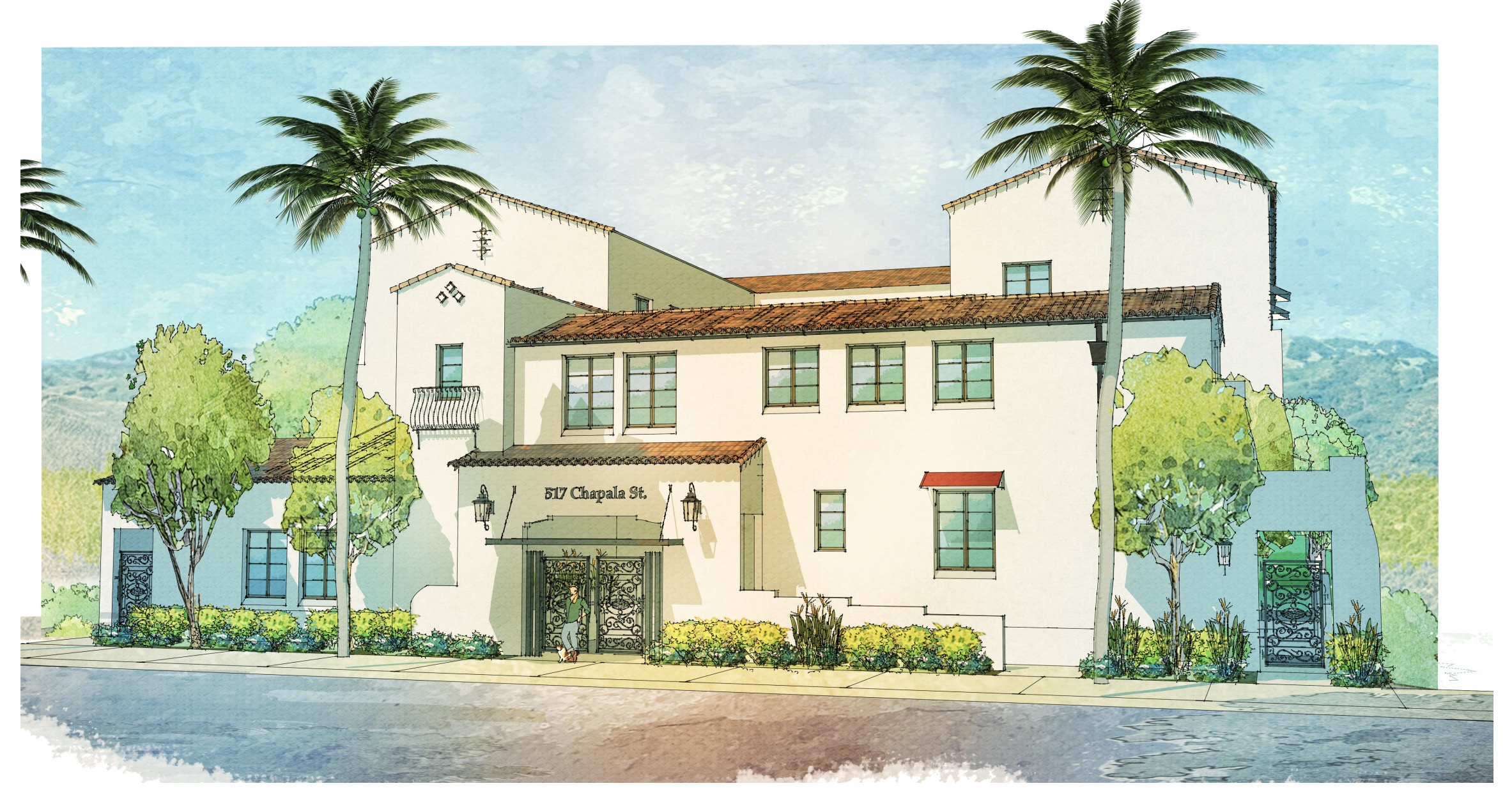 ••• Fourth, the commercial office building at 12 E. Carrillo Street (State/Anacapa)—”originally constructed in 1927 for the Santa Barbara Chamber of Commerce”—will be converted to 12 residential units.