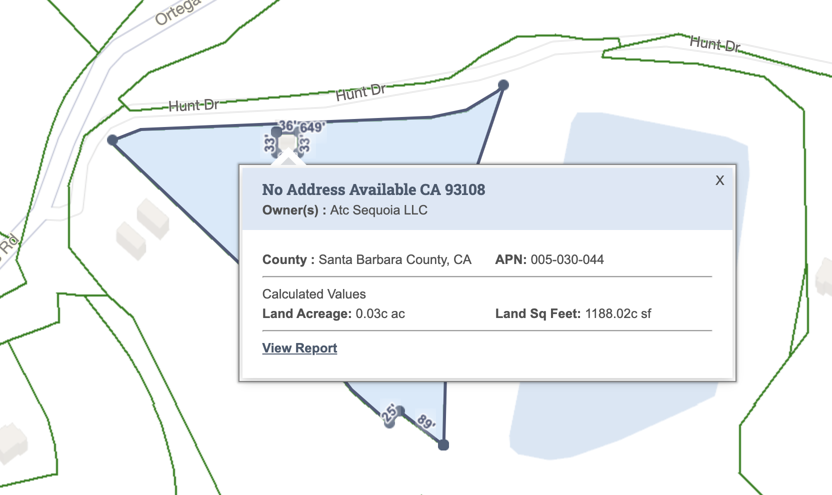 I asked the Montecito Association and the Santa Barbara Historical Museum, but they didn’t know anything about the building. So I tried some expert real estate agents, and one pointed out that there’s a second parcel (with no address) embedded Lesotho-style within the triangular 484 Ortega Ridge lot. Moreover, the building is square-ish, like it could be the tower in B.’s photo.