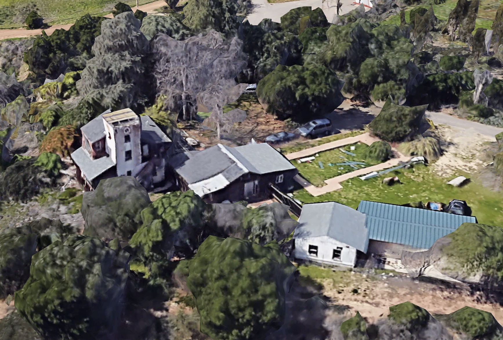 Back to 484 Ortega Ridge proper…. I pulled my head out of a certain crevice and looked on Google Earth, which I often forget exists. The tower in B.’s photo is definitely among the structures in the compound.