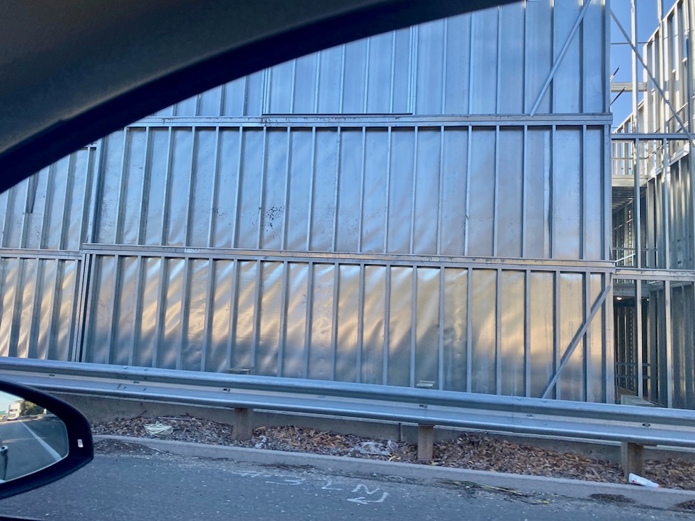 I wasn’t sure what J. was asking about, so I drove over, and it’s hard to miss—the structure is right up on the road, as if you’re in L.A. It’s also difficult to take a photo of from the freeway, and you should never do such a thing while driving.