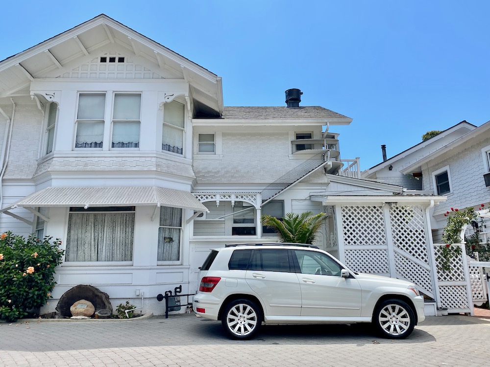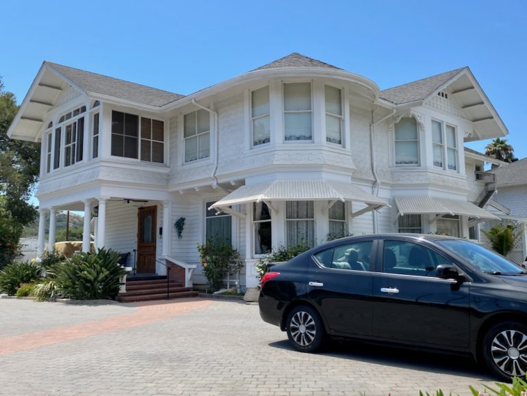 It’s called the Pierce Mansion, home to the widow of Charles Pierce, Santa Barbara’s first lumber dealer. The house was built in 1896. It’s built in the Queen Anne style. There was a huge redwood tree planted in the front yard in 1929, and a restaurant called the Redwood Inn operated here for a number of years as did an antique shop, Redwood Antiques. It’s currently being used as a residence.