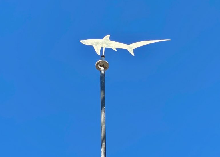 It’s atop the building on the corner of Santa Barbara and Yanonali Streets in the Funk zone. Home of the old Castagnola’s fish market.