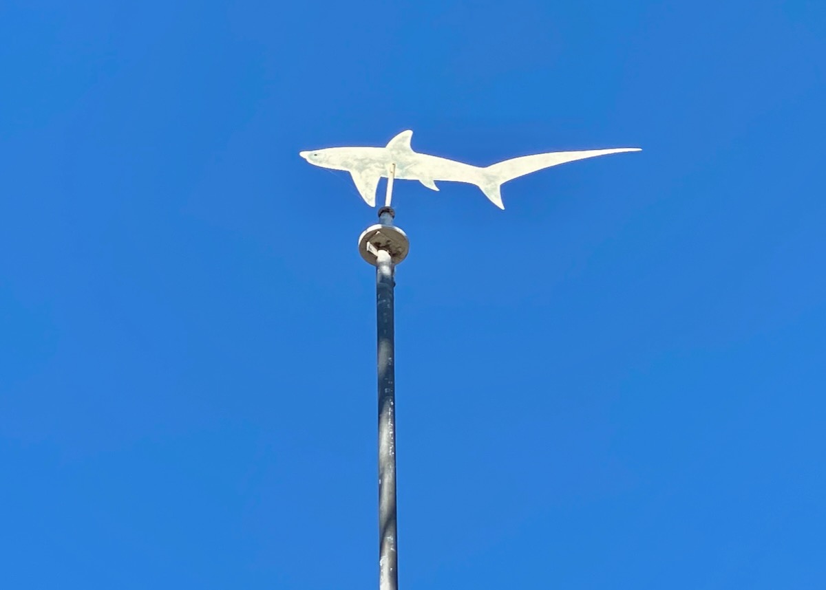 UPDATE: Congratulations to Stacey Wright for identifying the location as the corner of Santa Barbara and Yanonali Streets in the Funk zone (apparently once home Castagnola’s fish market). It’s not atop the building, though….