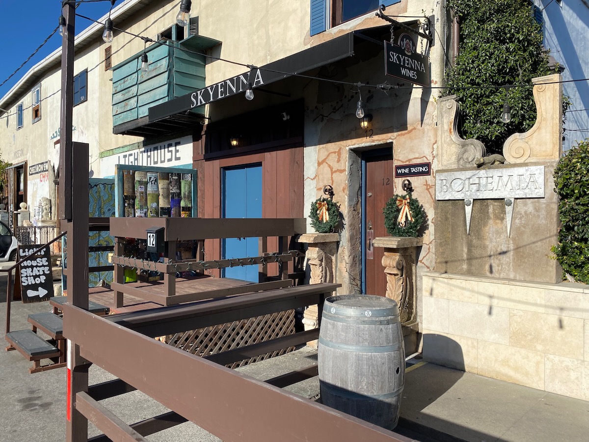 Outside of Skyenna Wine Lounge (formerly Bohemia Gallery) in the Funk Zone, 12 Helena Ave, Santa Barbara.