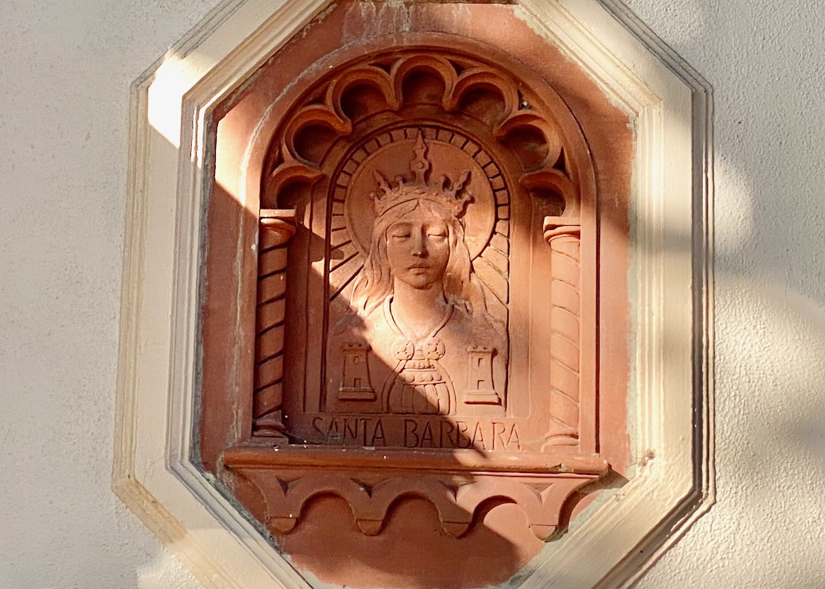 It’s St Barbara! She resides above the ATM on St near-ish to the corner of Figueroa.