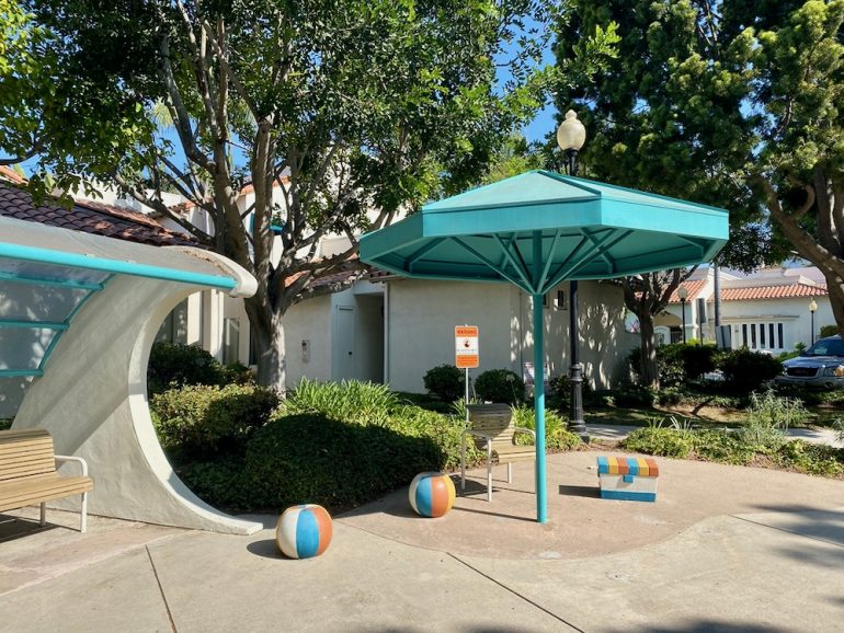 Update: Congratulations to Louise C. for correctly identifying this as outside the Rancho Franciscan Senior Apartments on Hitchcock Way.