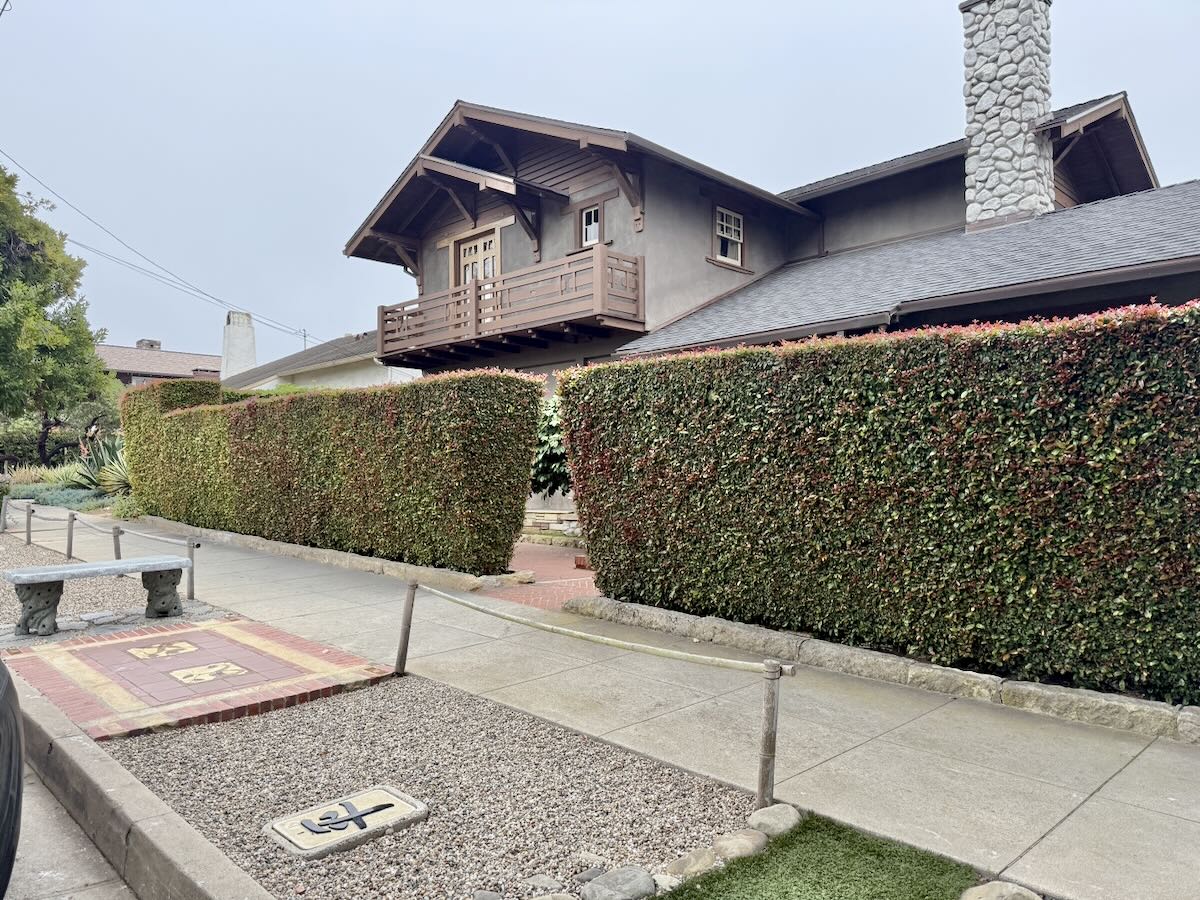 It’s the water meter cover on a house on the 300 block of padre street between garden and Laguna. The house has a strong Mr. Miyagi vibe with vintage American cars in front…