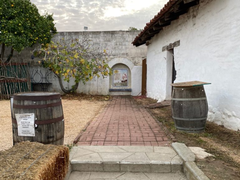 It is part of the El Presidio de Santa Bárbara State Historic Park but across the street in the courtyard of the little adobe (with the dying garden) next to the Post Office.