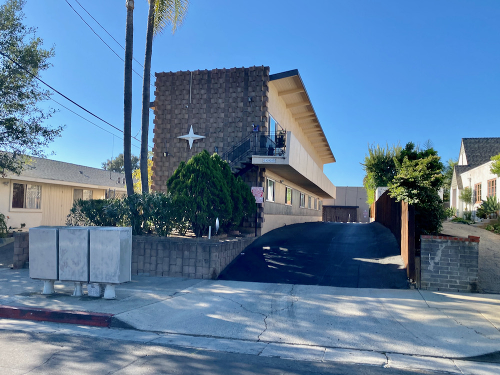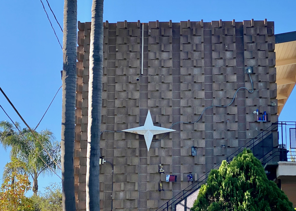 Update: Congratulations to Eric for correctly identifying this as the Malabar Apartments at 1025 Olive Street (Figueroa/Carrillo).