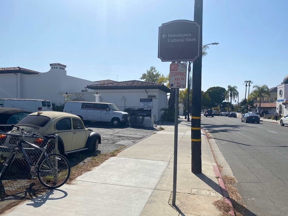 Hard to tell as there may be multiple signs like this, but I think this is on De La Vina Street near the back driveway to Ralphs.