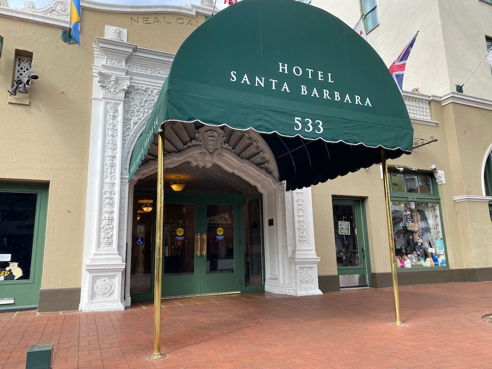 Update: Congratulations to Karl for correctly identifying this as the Hotel Santa Barbara on State Street (Cota/Haley).