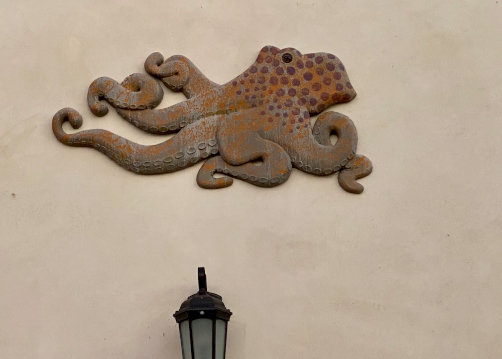 UPDATE: No one guessed it, so here’s the answer: the octopus in question is at the Tide Pool Villas “aparthotel” in the West Beach neighborhood (at the corner of Chapala and W. Mason).