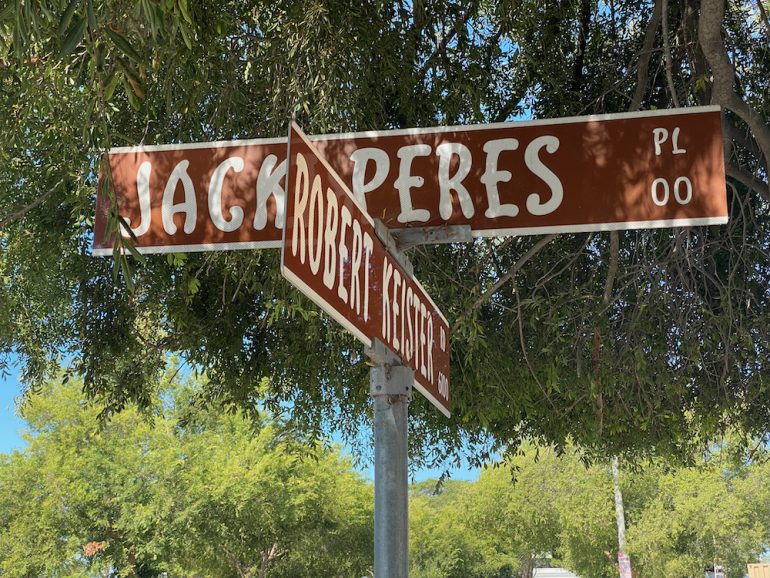 What you can’t tell from the map is that the streets are all named after people. To be more specific, “local military pilots killed in action during World War II,” according to Goleta History (whose post about the Marine base in the area is well worth a read): Frederick Lopez, Wallace Becknell, Rex Eckles, Jack Peres, David Love, Francis Botello, and John W. Hays. It’s hard not to think about their lives—and what they sacrificed for us—when you see their full names.